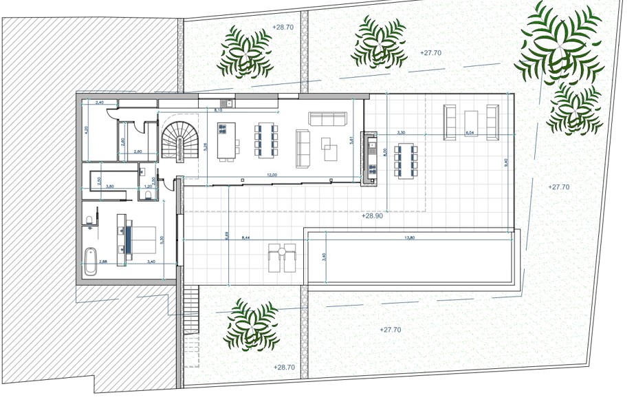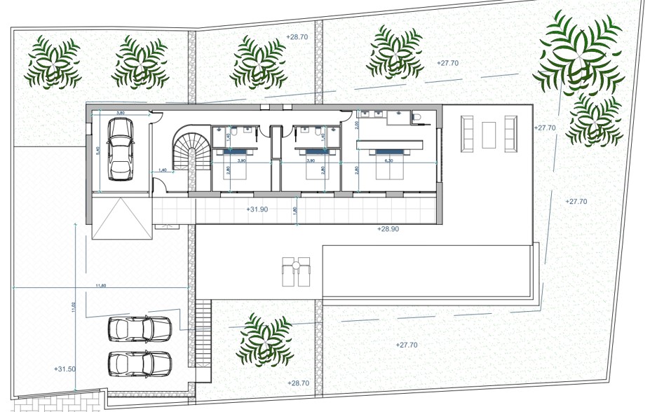 Deze villa is een meesterwerk van modern design, waarbij elke verdieping is ontworpen om het natuurlijke licht te maximaliseren en een vloeiende, luxueuze woonervaring te bieden: