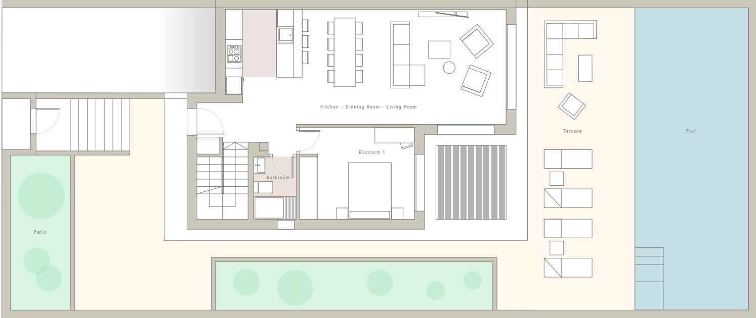 - Privé Zwembad: Een ruim privézwembad op een zonnig terras.